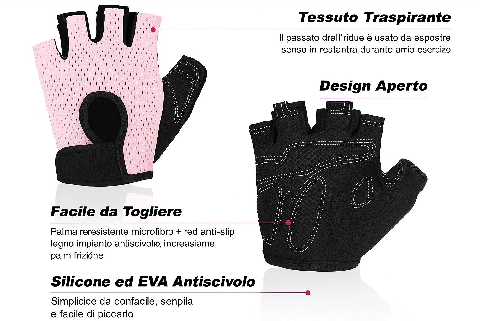 Guanti da fitness professionali, senza dita e antiscivolo, perfetti per l’estate. Ideali per ciclismo, palestra, sollevamento pesi e attività all’aperto. Unisex e comodi da indossare.
