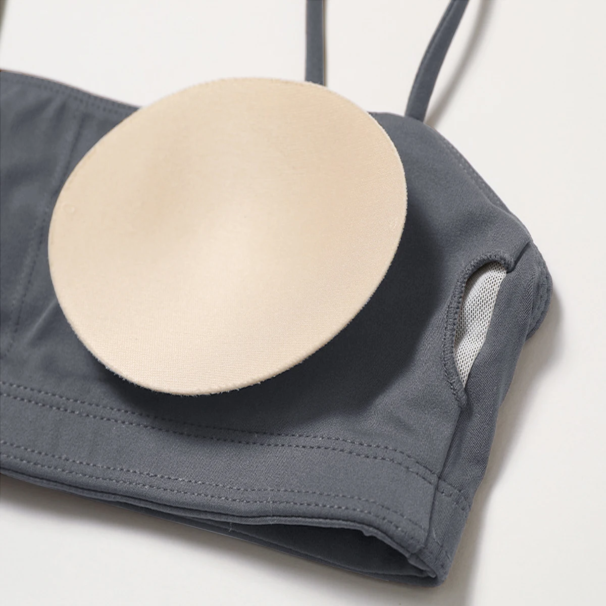 Il reggiseno sportivo è dotato di cuscinetti rimovibili che facilitano la pulizia e garantiscono freschezza e traspirabilità costante.